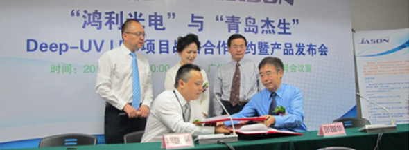 鸿利光电董事长李国平在与青岛杰生Deep-UV LED项目战略合作签约暨产品发布会上表示,鸿利牵手青岛杰生将利用其在各自领域的领先优势,战略资源相互